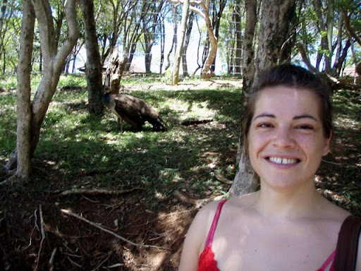 Plutôt enjouée malgré son oeil qui part en sucette, la dinde ... Wooops on me glisse dans l'oreillette qu'il s'agit en fait d'un paon, qui se trouve en arrière plan, désolé public préféré, je me suis trompé de bête!